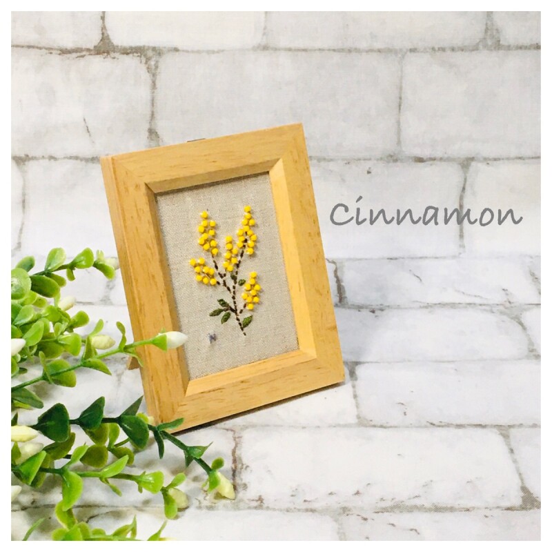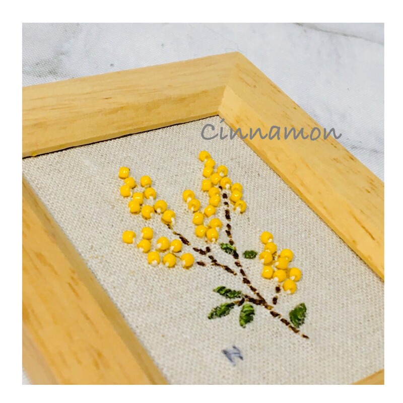 こちらは以前好評だったミモザ柄のプリント生地にビーズを刺繍しています